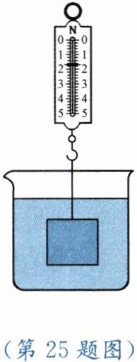 25. 在空气中用弹簧测力计测得物体重为2.7 N。如图所示,将物体浸没在水中时,弹簧测力计的示数为1.7 N,g取10 N/kg。