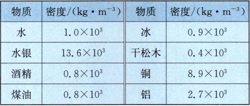 解:A.酒精和煤油是不同物质,密度均为$0.8×10^{3}\ \mathrm{kg/m}^3$,故A错误;