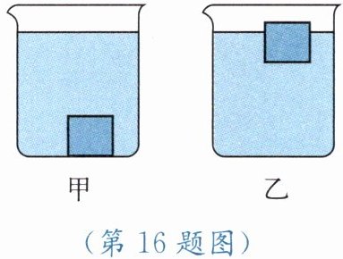 16. 水平桌面上,甲、乙两个相同的烧杯中盛有不同浓度的盐水。现将两个相同的物块分别放入烧杯中,物块静止时,两个烧杯中液面恰好相平,如图所示。由此可知(
