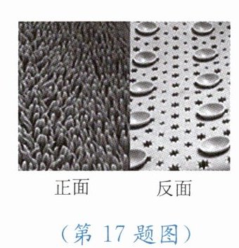 17. 草坪式浴室防滑垫是用柔软的聚氯乙烯材料制成的,其正面为仿草坪式设计,反面有许多小吸盘,如图所示。正面是通过