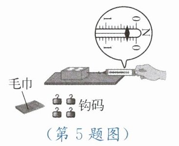 5. 在探究影响滑动摩擦力大小的因素时,将木块放在水平木板上,用弹簧测力计沿水平方向匀速拉动木块,弹簧测力计的示数如图所示,此时木块所受滑动摩擦力大小为