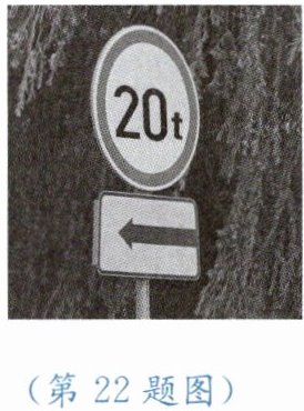 22. 一座桥的桥头立有如图所示的一块标志牌。现有一自重为 49 000 N 的大卡车,装了 7 m³的石子,石子的密度为 2.5×10³ kg/m³。请通过计算说明该卡车能否从该桥上通过。( $ g $ 取 10 N/kg)