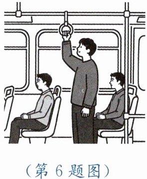 6. 如图所示,一名乘客站立在公交车上,当公交车突然紧急刹车时,他的身体会猛然向前倾倒;而当静止的公交车突然启动时,他的身体又会向后仰。