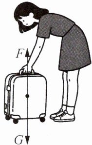 解:行李箱静止,处于平衡状态。竖直方向受重力$G$(竖直向下)、拉力$F$(竖直向上)和地面支持力$N$(竖直向上)。由平衡条件得$F + N = G$,则$G - F = N$。重力$G$和拉力$F$的合力大小为$G - F$,方向竖直向下。