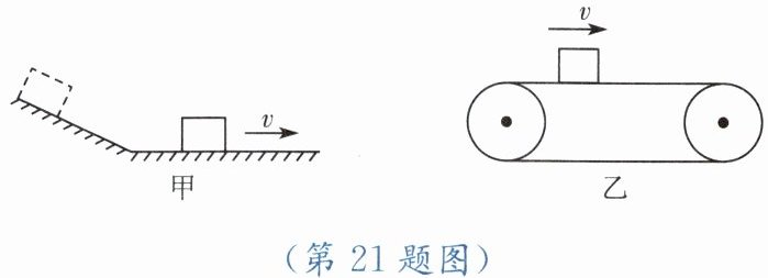 21. (1)如图甲所示,一小木块从斜面上滑下,在粗糙的水平面上滑动一段距离后便停下来。请你画出木块在水平面上滑动时的受力示意图。