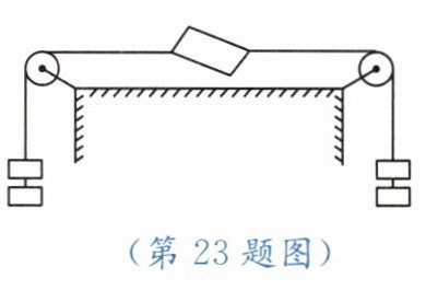 23. 小华在“探究二力平衡的条件”实验中,将系于卡片两个对角的线分别跨过左右支架上的滑轮,并在线的两端分别挂上相等质量的钩码,观察卡片在什么情况下处于平衡状态。如图所示,在卡片处于平衡状态后,小华把卡片转过一个角度,松手后卡片不能保持平衡,她这样做是为了说明不在