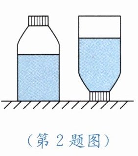2. 如图所示,一个未装满水的瓶子,正立在水平桌面上时,对桌面的压强为 $ p_1 $,瓶底受到水的压强为 $ p_2 $;倒立瓶子对桌面的压强为 $ p_3 $,瓶盖受到水的压强为 $ p_4 $。则 $ p_1 $