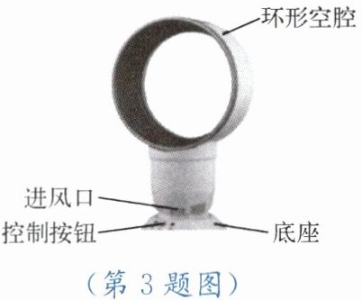 的作用下,就牢牢地吸在竖直玻璃上。如图所示的“无叶电风扇”,底座的电动机吸入空气,空气经过加压后被送入环形出风口,从宽度只有1.3mm的缝隙中向外喷出,因流速