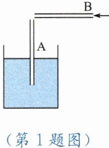 1. 如图所示,把长10cm左右的饮料吸管A插在盛水的杯子中,通过贴靠在A管上端的B管吹气。由于气流影响,A管上端的压强