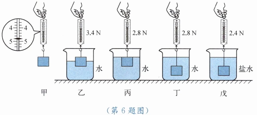 6. 如图所示,小明在探究浮力的大小与哪些因素有关。下列说法中正确的是(