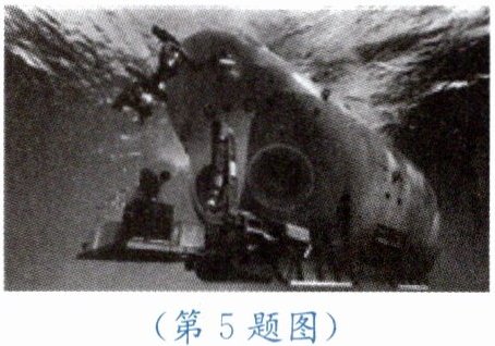 5. 如图所示,我国自主研发的“奋斗者号”载人潜水器已成功抵达深海 10 909 m。下列有关“奋斗者号”的说法中正确的是(