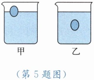 5. 如图所示,将同一个鸡蛋先后放入甲、乙两杯盐水中。鸡蛋在甲杯中处于漂浮状态,所受浮力为 $ F_{\mathrm{甲}} $;在乙杯中处于悬浮状态,所受浮力为 $ F_{\mathrm{乙}} $。以下判断正确的是(