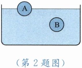 2. 体积相等的两个实心小球 A、B 在如图所示的位置保持静止,A、B 两球密度的大小关系是 $ \rho_{\mathrm{A}} $