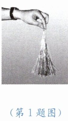 1. 如图所示,将塑料绳一端扎紧,另一端撕成尽可能多的细丝。用手从上向下捋几次,观察到细丝蓬散开来,这是因为细丝与手摩擦后带上