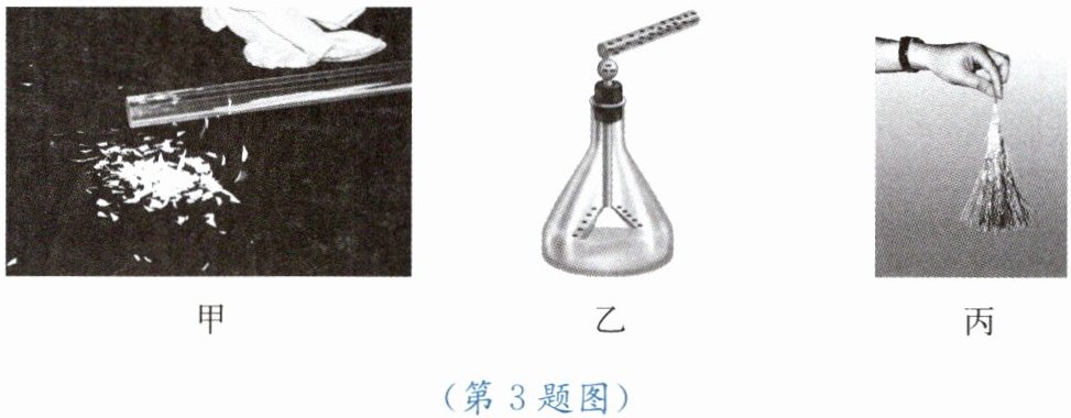 3. 如图甲所示,用丝绸摩擦过的有机玻璃棒靠近碎纸屑,发现纸屑被吸引,说明摩擦起电,带电体能