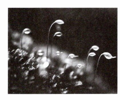 远看那片葱绿的苔藓,上面布满点点白色,犹如片片雪花,那就是苔花。近看那点点白色,是一根根拔地而起的红丝,由青玉色的似米一般的孢子组成,宛如一块块细细打磨过的石英。