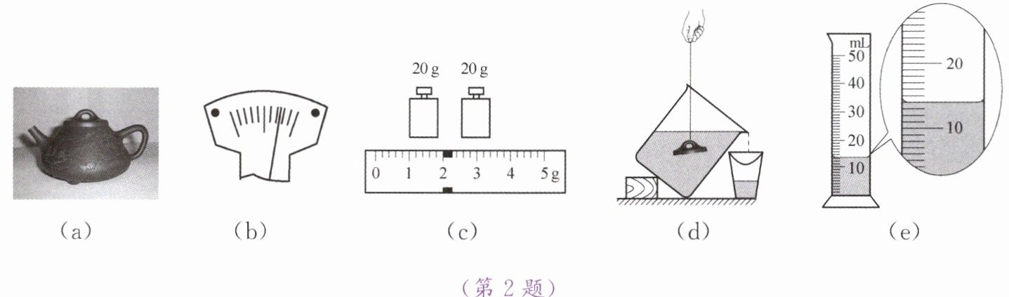 2. 小明想知道家里紫砂茶壶[图(a)]的密度,于是对壶盖进行如下测量。