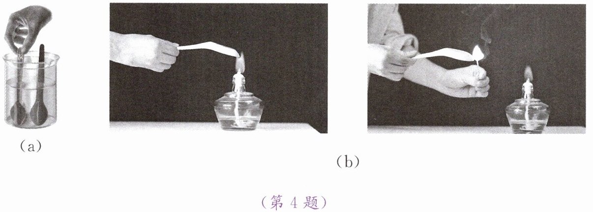 (2)如图(b)所示,将瓷勺的勺头放在酒精灯火焰上加热一段时间,然后与火柴头接触,火柴被点燃。