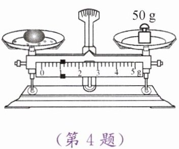 4. 小明用一架旧天平称一个鸡蛋的质量。在调节天平平衡时,先将游码移至“0”刻度线处,此时指针偏向分度盘右侧,应将平衡螺母向