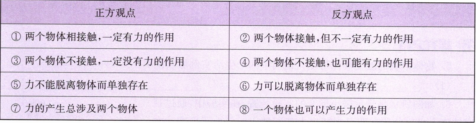 12. 在以“力”为主题的辩论赛中,正方和反方提出了许多观点,小明将他们的观点归纳整理成下表,其中正确的有