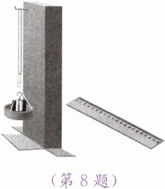 8. 用橡皮筋、回形针、棉线、小瓶盖、牙膏盒、铁丝、钩码和刻度尺等,做一个如图所示的测力计。下列说法错误的是(