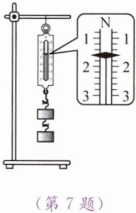 7. 小明把两个钩码挂到弹簧测力计的挂钩上,弹簧测力计的示数如图所示。下列说法中错误的是(