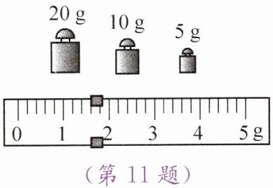 11. 用托盘天平测量一金属块的质量,按照正确的实验步骤进行操作,当天平平衡时,右盘中的砝码和游码在标尺上的位置如图所示,则金属块的质量为