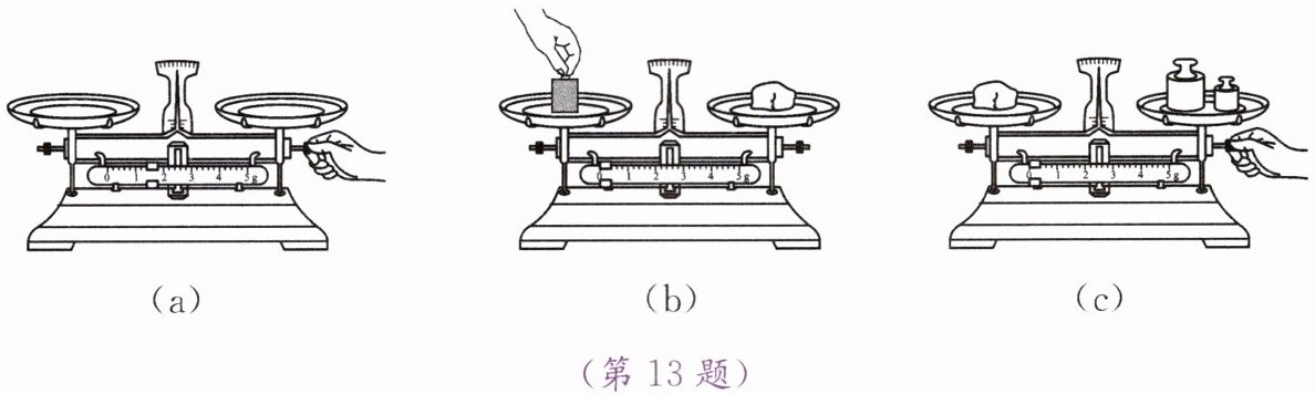 答案:(a)调节平衡螺母前游码未归零;(b)用手直接拿砝码;(c)物体和砝码位置放反了