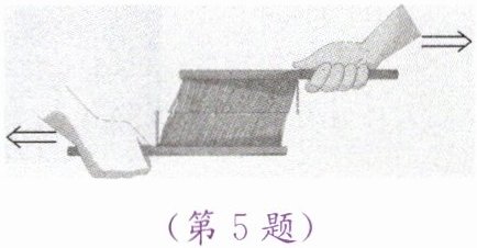 5. 如图所示,将两把刷子的刷毛紧压后向两边拉动,发现两把刷子的刷毛都发生了弯曲。该实验说明:① 力可以使物体发生