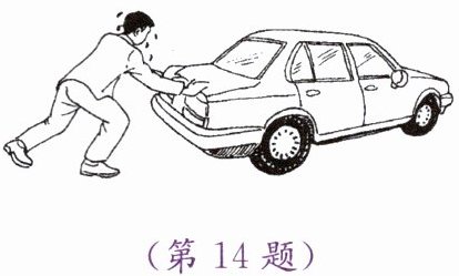 14. 如图所示,某人用水平方向的力推静止在地面上的汽车但没能推动,此时汽车依然处于
