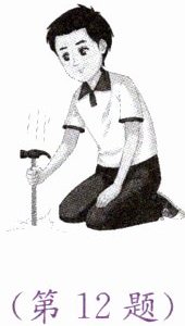 12. 如图所示,当锤头松动时,握住锤柄迅速向下撞击坚硬的地面,锤头会紧紧地套在木柄上,这是因为锤柄撞击地面时(