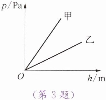 3. 如图所示是甲、乙两种液体内部的压强与深度的关系图像。设液体甲的密度为ρₐₐ,液体乙的密度为ρₑ,ρₐₐ