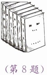 8. 如图所示,在水平书架上竖直并排放着同样的10本书,若取走3本,则剩下的书对书架的压强