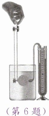 6. 小明用如图所示的装置探究液体内部压强的规律。当小明用手指按压橡皮膜时,U形管两边液柱的高度几乎不变化,出现这种情况的原因可能是