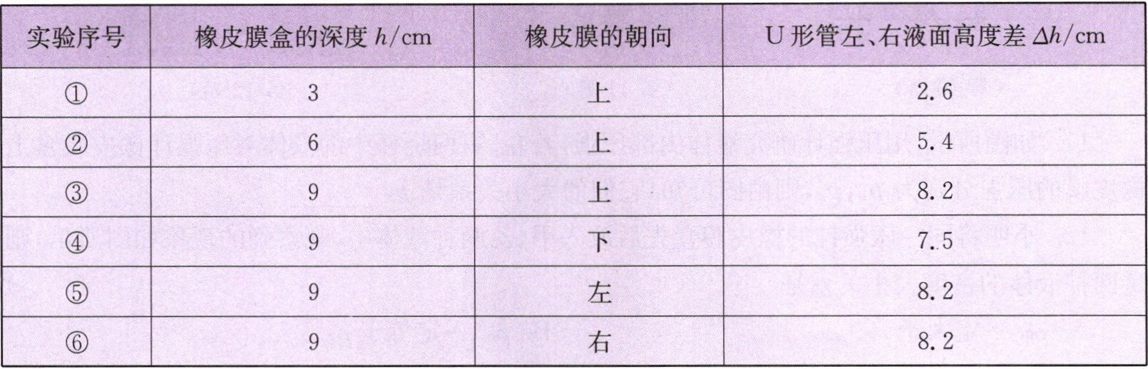 答案:6. 装置漏气 取下软管重新安装 (1) 4 (2)同一深度,液体向各个方向的压强相等 1、2、3 液体压强随深度的增加而增大 1、4、5或2、6