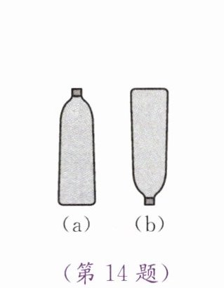 14. 一个装满水的塑料瓶,密封好后放在水平桌面上,如图(a)所示,水对瓶底的压强为p₁,瓶底对桌面的压强为p₁';将瓶倒置后,如图(b)所示,水对瓶盖的压强为p₂,瓶盖对桌面的压强为p₂',则(
