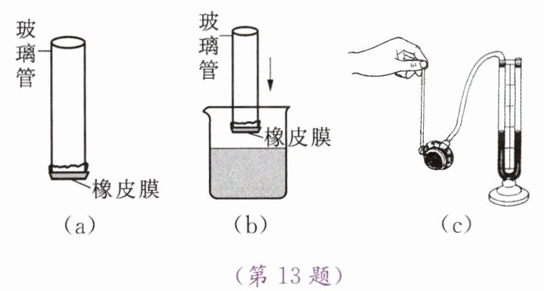 答案:13. 橡皮膜向下凸出 橡皮膜向上凹 (c) 压强计能显示液体内部压强的大小