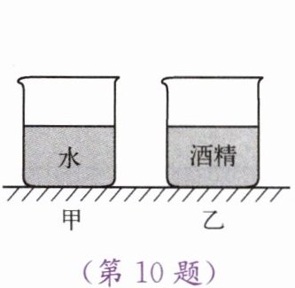 10. 如图所示,两个完全相同的烧杯内分别装入相同深度的水和酒精,甲烧杯底部受到水的压强