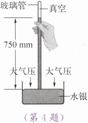4. 用如图所示的装置测量某地的大气压值,实验时管内外水银面的高度差是750 mm。下列说法中正确的是(