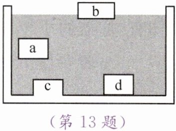 13. 如图所示,a、b、d是能自由移动的物体,c是容器自身凸起的一部分,受到浮力的物体或部分有