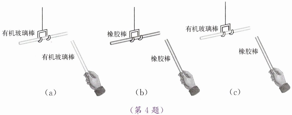 4. 如图所示,利用有机玻璃棒和橡胶棒进行下列实验。