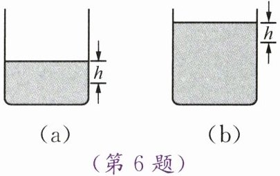 6. 图(a)所示桌面上的烧杯中盛有浓盐水,现向烧杯内加适量水,将液体搅匀并待其静止后如图(b)所示。加水后,容器对桌面的压强将