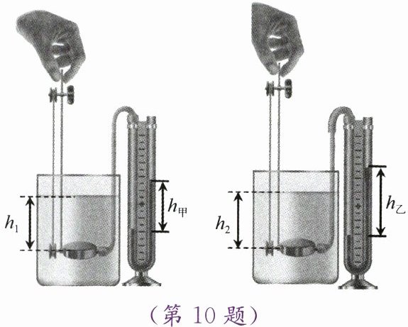 11. 用手将一个密度为 $ 0.9 × 10^3 \, \mathrm{kg/m}^3 $ 的实心小球先后浸没在水和酒精中。松手后,小球静止时,排开水和酒精的体积分别为 $ V_1 $ 和 $ V_2 $,小球在水和酒精中所受的浮力分别为 $ F_1 $ 和 $ F_2 $。下列判断正确的是($ \rho_{\mathrm{酒精}} = 0.8 × 10^3 \, \mathrm{kg/m}^3 $)(