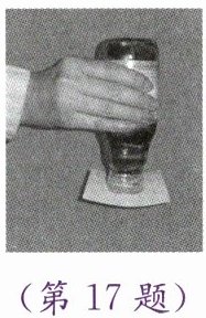 17. 如图所示,将塑料瓶中灌满水,用一张纸片覆盖在瓶口,压紧后倒置,瓶中的水和纸片都不会下落,这是因为