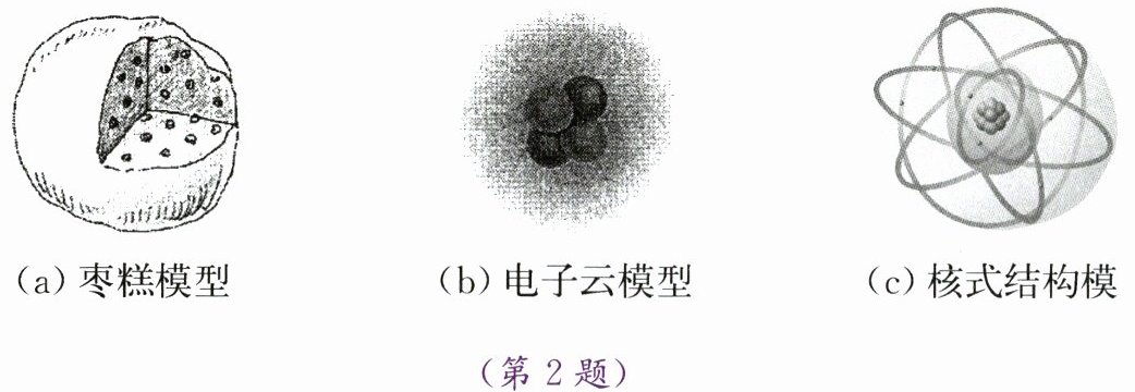 2. 如图(a)、(b)、(c)所示的三种原子模型,物理学家卢瑟福提出的原子模型是图