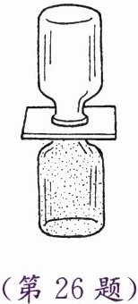 26. 如图所示,把一只装有空气的瓶子倒放在装有密度较大的红棕色二氧化氮气体的瓶子上,使两瓶子的瓶口相对,两瓶之间用一块玻璃板隔开。