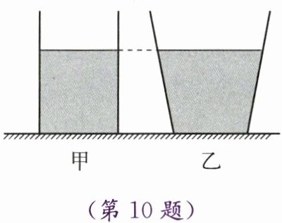10. 如图所示,水平桌面上有底面积和质量都相同的甲、乙两平底容器,内部分别装有深度相同、质量相等的不同液体。下列说法中正确的是(