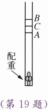 19. 如图所示是小明制作的简易密度计。他在吸管下端塞入适量金属粒作为配重,目的是使吸管能