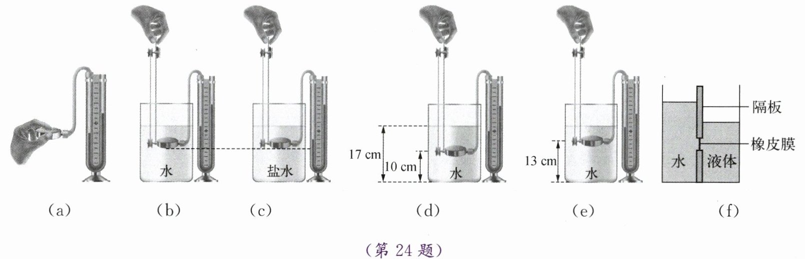 答案:24.(1)高度差 不漏气 相平 (2)液体的密度 (3)L≥20cm (4)<