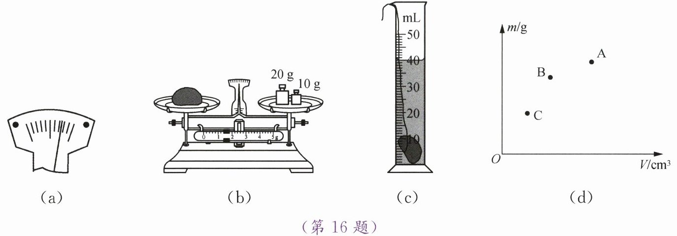 (4)小明又测出 A、B、C 三个石块的质量和体积,在图(d)上描出三个对应的点,则其中石块